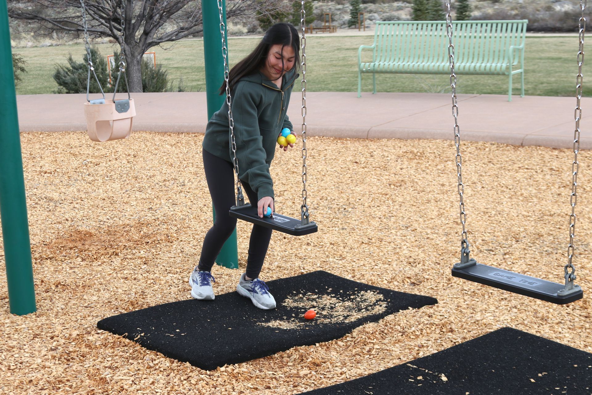 Neither did the weather didn't stop a few dozen ArrowCreek kids from finding all of his eggs that were left behind.