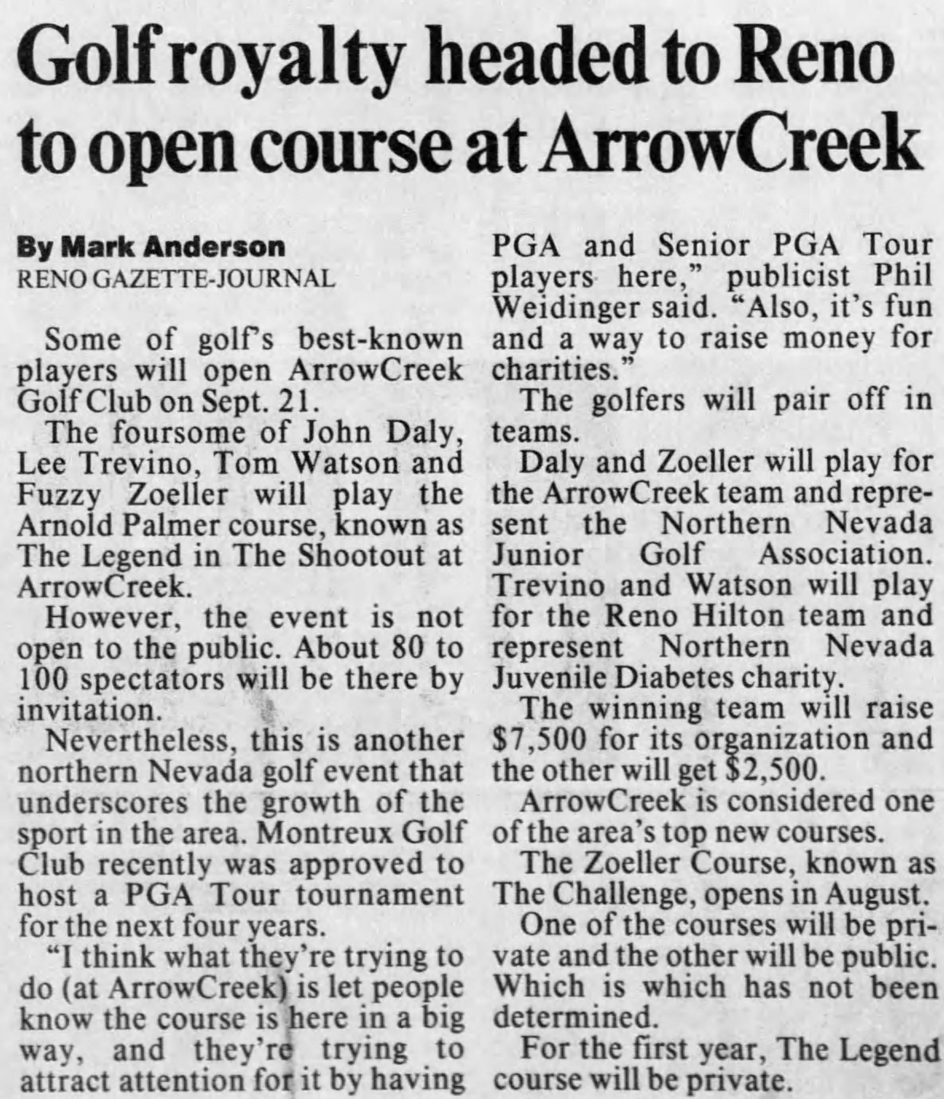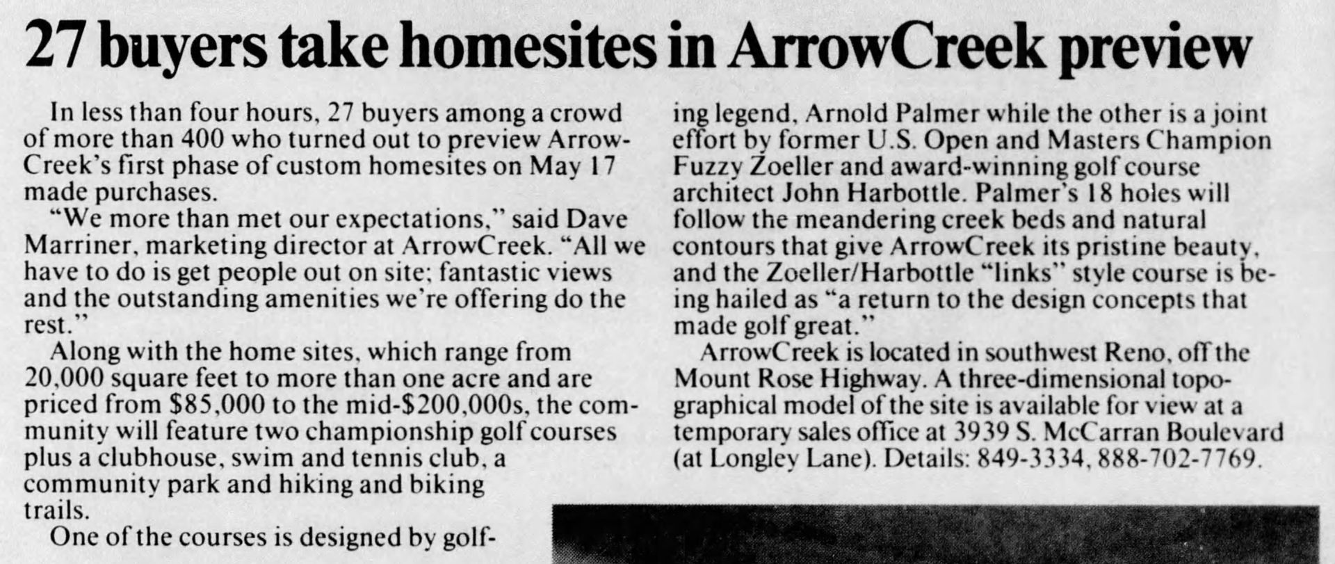Historic ArrowCreek Articles